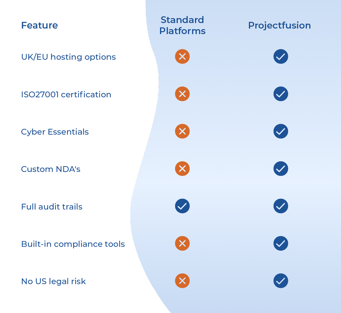 Projectfusion keeps your data secure, compliant, and under your control.